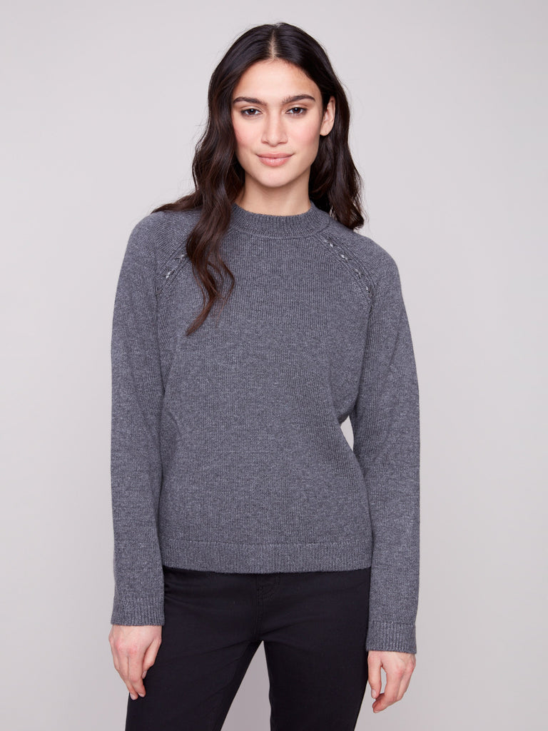 Quick viewBeaded Vintage Wash V-Neck Knit Top - Charcoal $99.00 CAD /