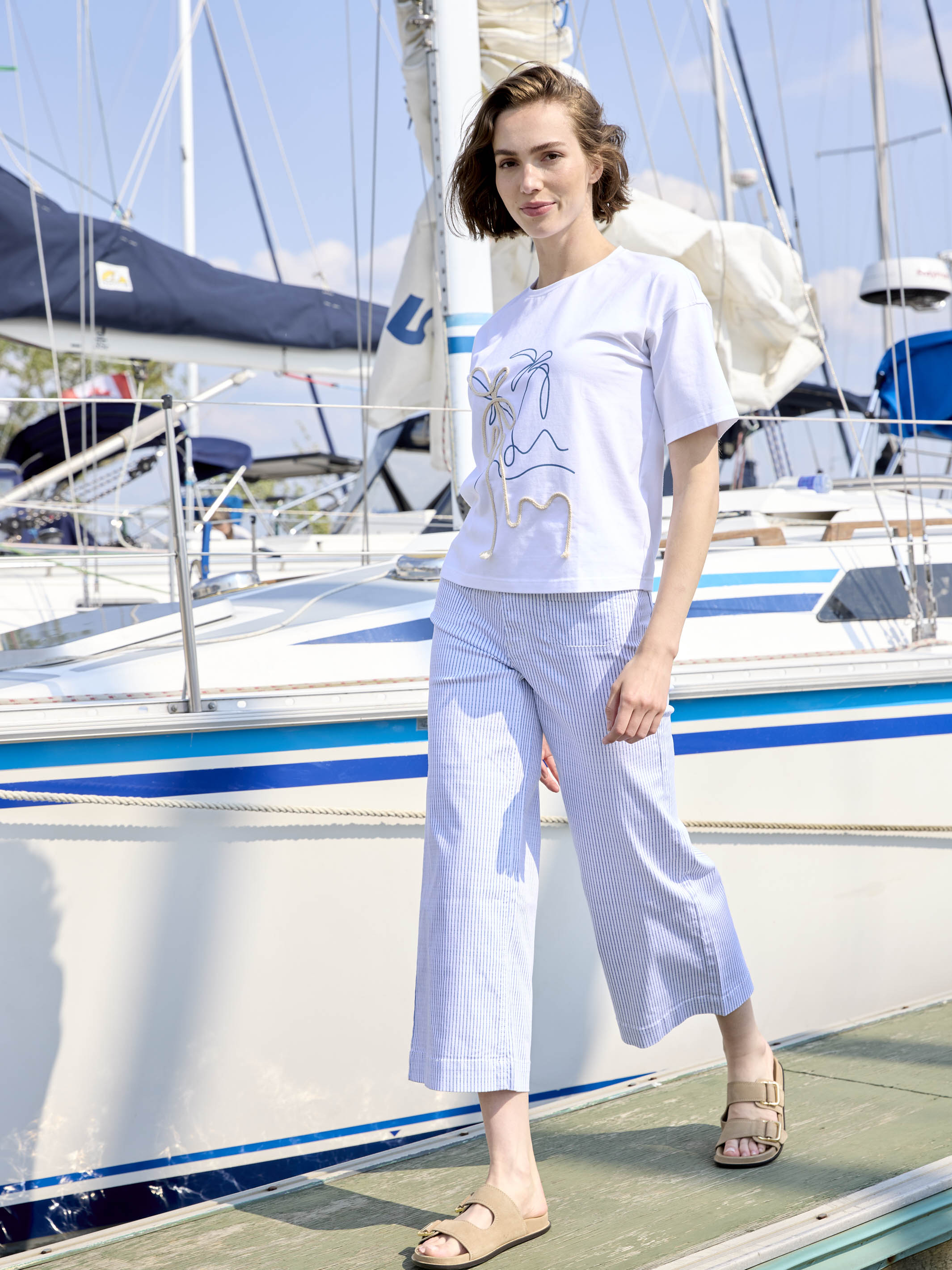 Revamp your spring wardrobe with our uniquely crafted crew neck T-shirt. This eye-catching white T-shirt, adorned with a vibrant graphic and intricate soutache detailing, brings a fresh twist to the classic style. Elevate your everyday look effortlessly with this standout piece.