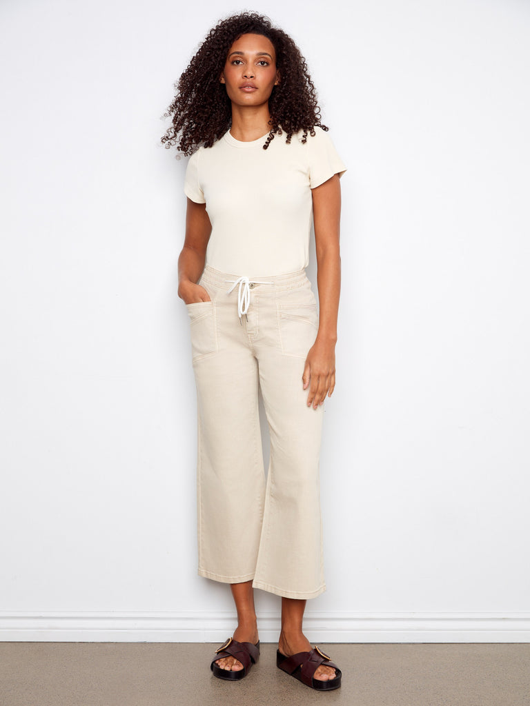Cropped Twill Pants With Embroidered Hem - Natural $139.00 CAD /