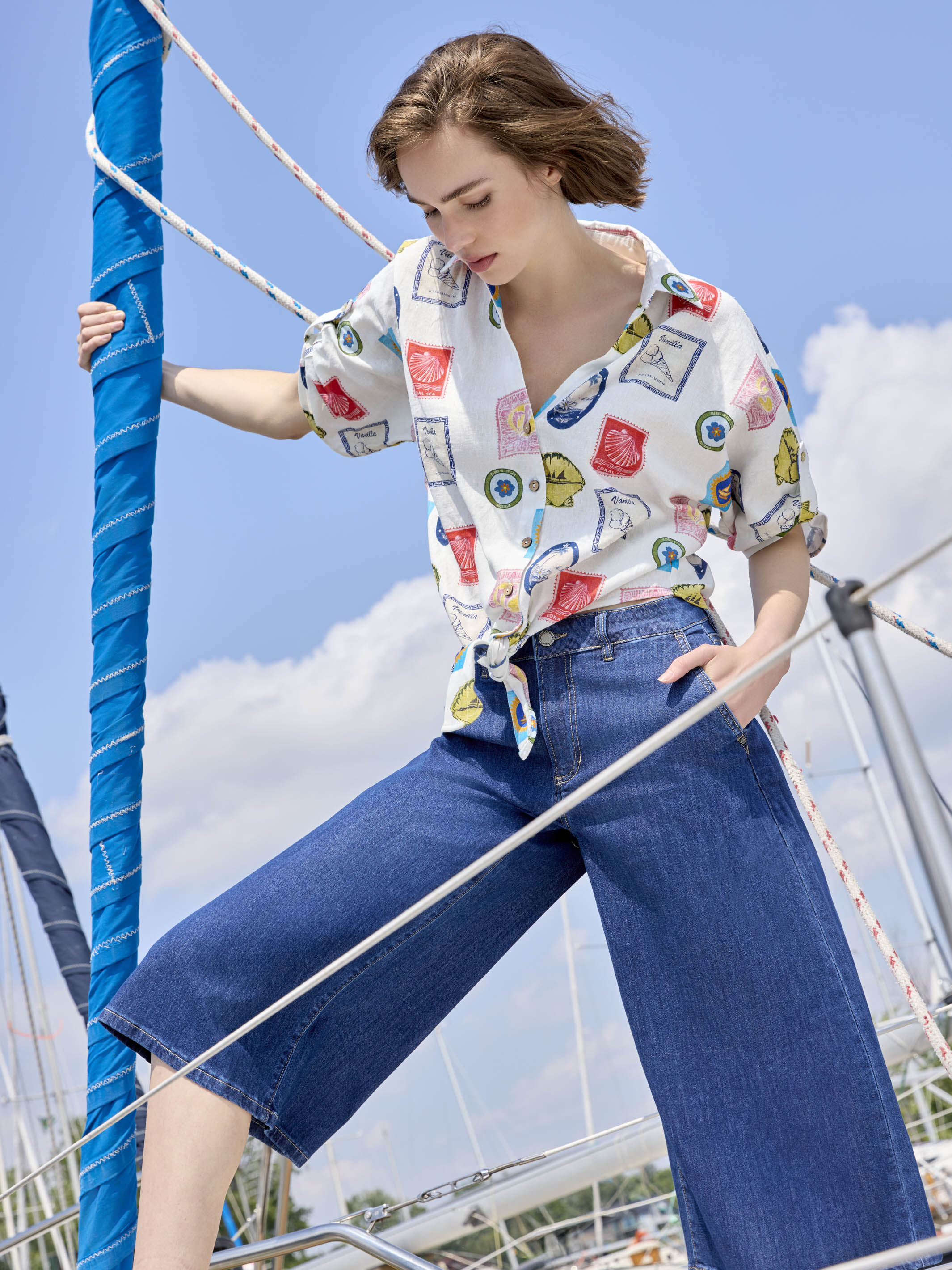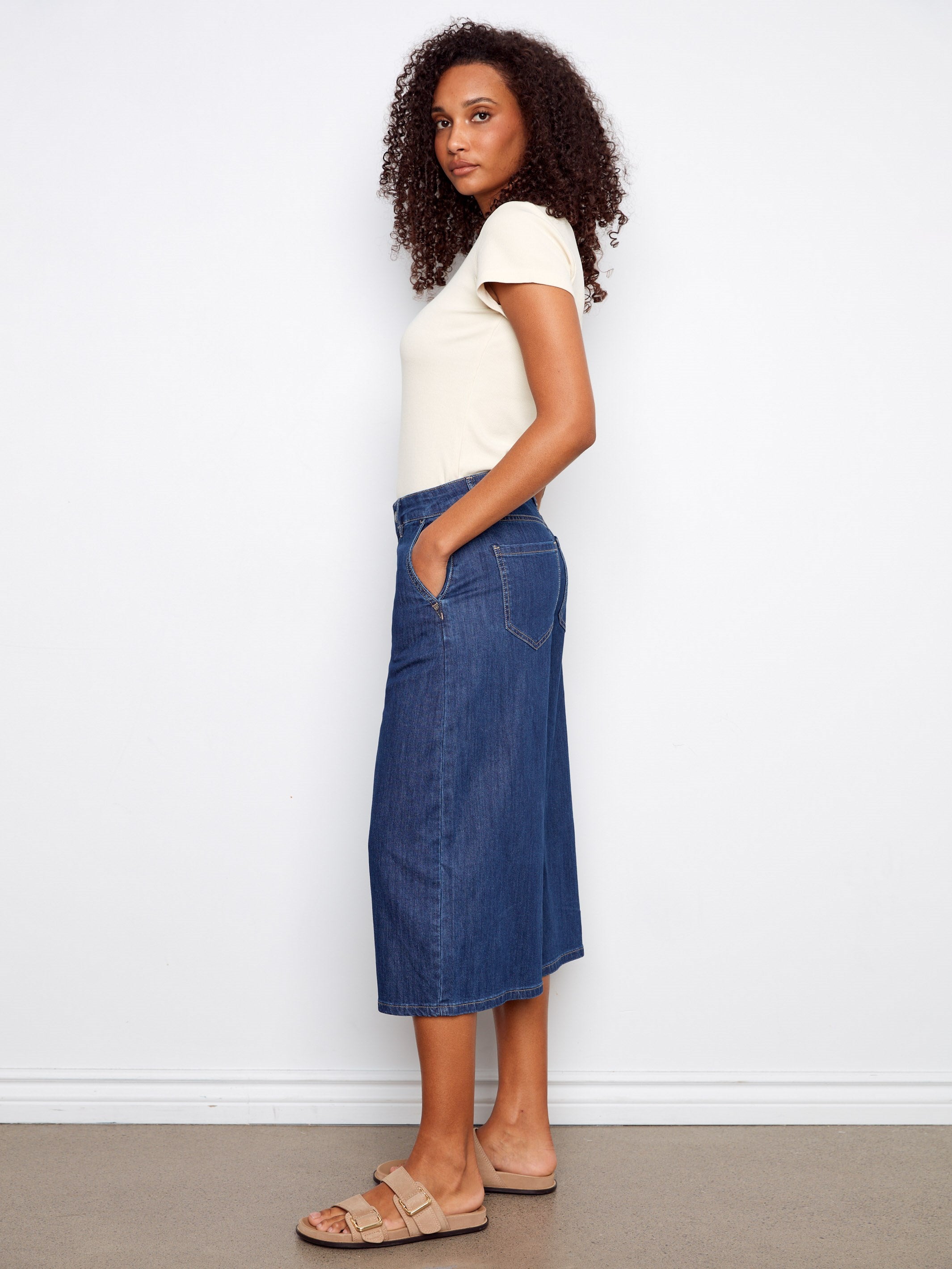 Ultra-comfortable, these wide leg palazzo jeans bring effortless style to everyday wear. Their cropped length and slash pockets add a modern, relaxed touch, while the rich indigo shade enhances their timeless appeal and makes them perfect for casual outings. A versatile piece that slips seamlessly into your wardrobe.