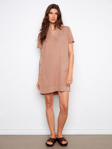 Elevate your style with our Collared V-Neck Tencel Dress, where effortless elegance meets all-day comfort. Crafted in a captivating desert brown shade, this dress features a flattering V-neckline and convenient patch pockets. Perfect for sunlit daytime outings or laid-back evening gatherings, it’s a versatile wardrobe essential that instantly upgrades any look.