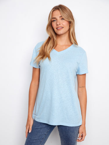 This V-neck T-shirt is made of 55% linen and 45% viscose.