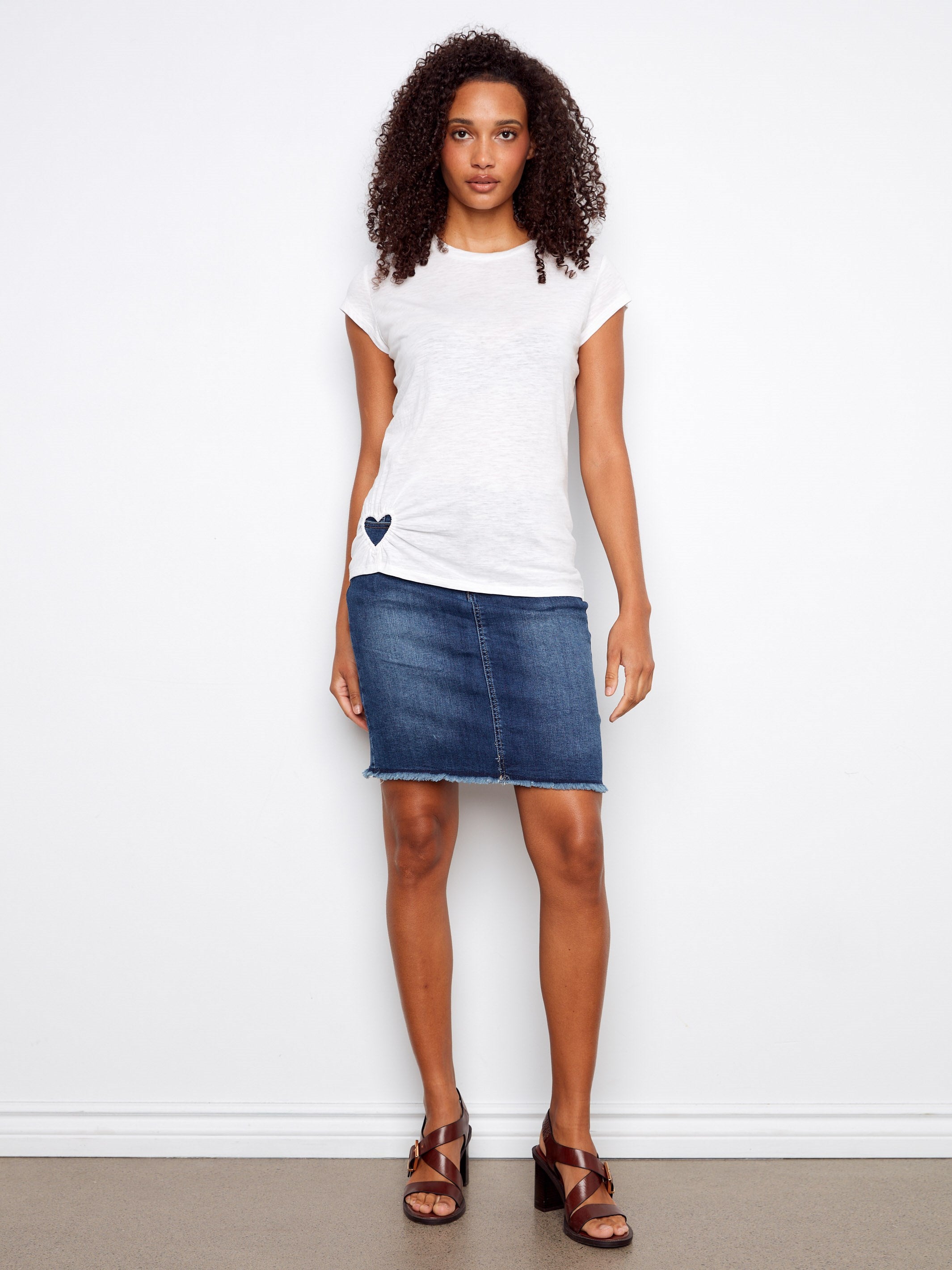 Embrace sustainable style with our organic cotton t-shirt, featuring an adorable heart cut-out design. This versatile white t-shirt pairs effortlessly with jeans or shorts, making it a must-have addition to any spring wardrobe. Experience comfort and eco-conscious fashion in one go.