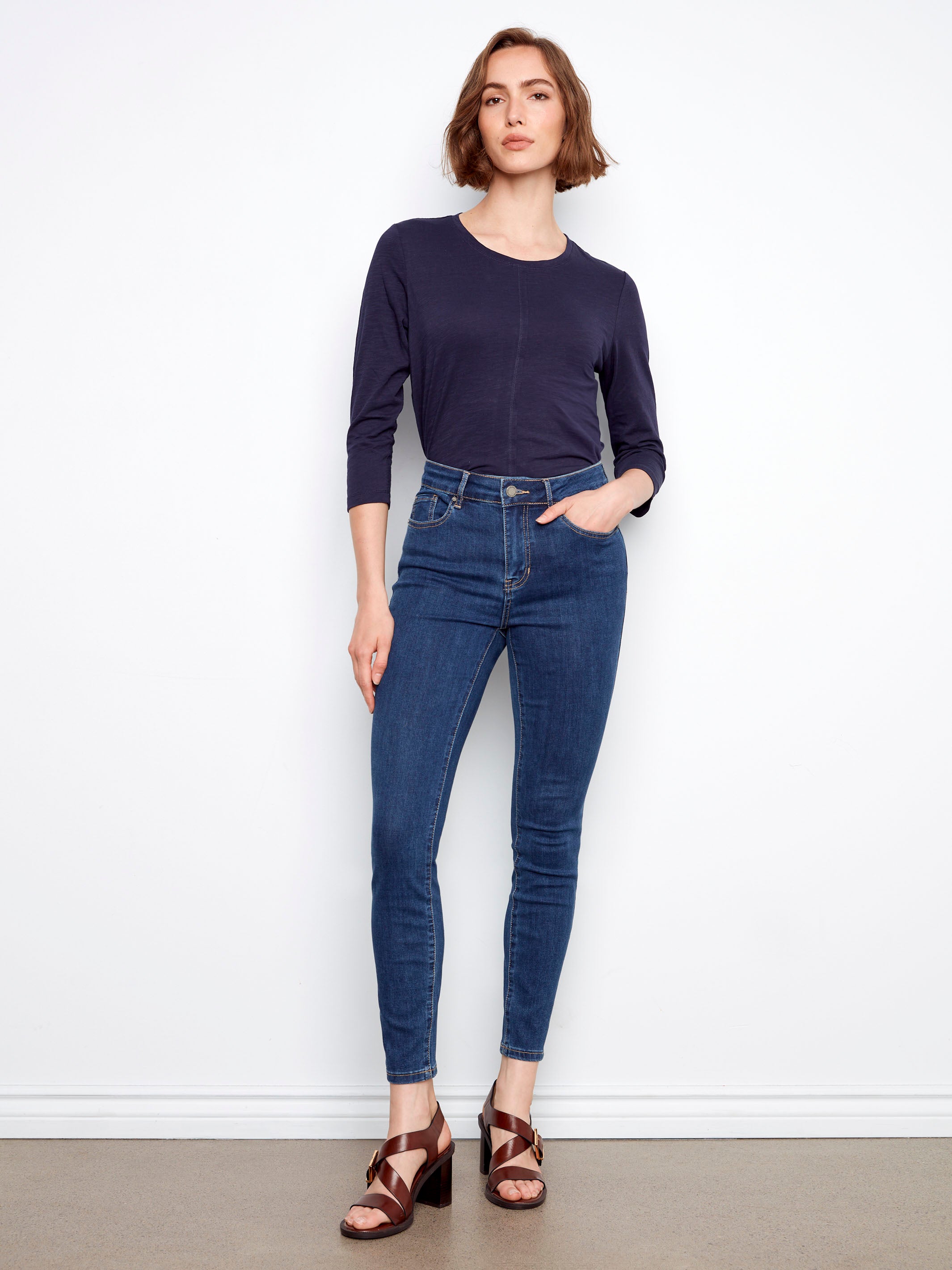 Enfilez nos Jeans Skinny Carine dans la couleur bleu indigo pour un look raffiné. Leur coupe flatteuse met en valeur votre silhouette, idéale pour passer du bureau à une soirée en ville. Associez-les avec votre haut préféré pour un style chic instantané. Un incontournable à ajouter dans votre garde-robe de printemps!