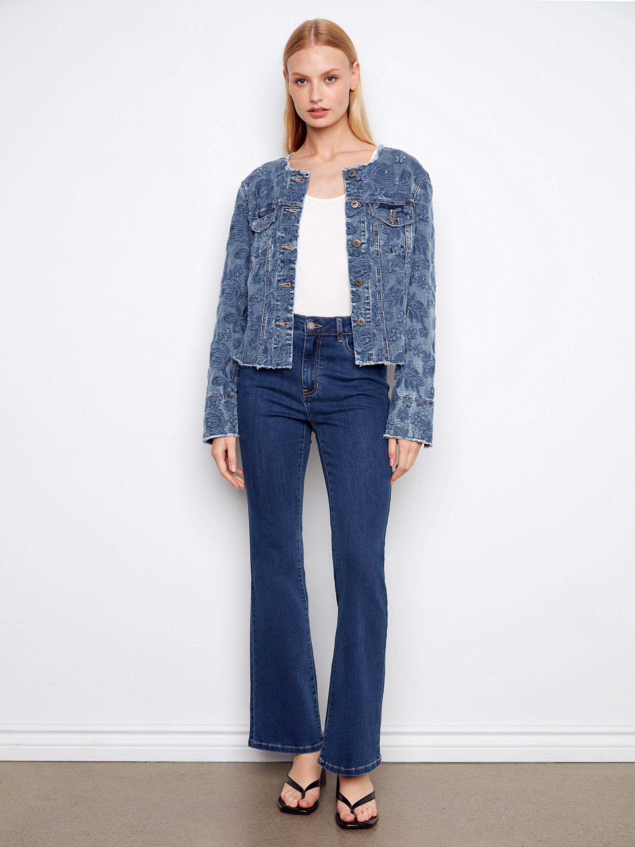 Une veste en denim remarquable pensée pour sublimer votre style, ornée d’une délicate broderie à œillets qui apporte texture et relief au tissu bleu moyen. Parfaite pour des superpositions sans effort, cette veste pour femmes est un ajout polyvalent à toute garde-robe.