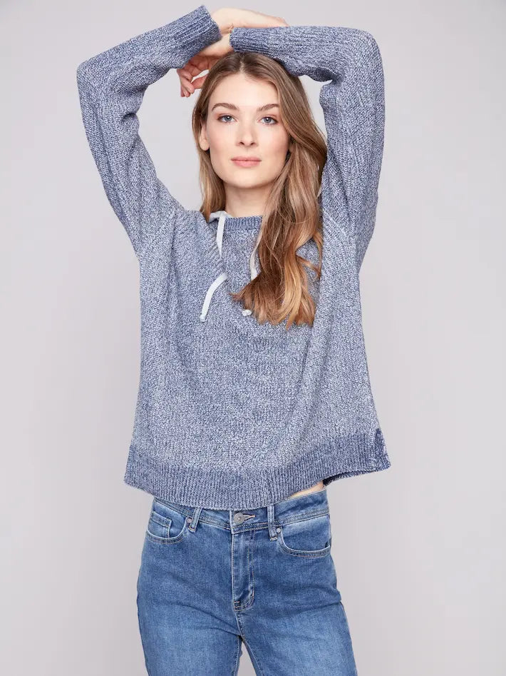 Chandail à capuchon avec détail tressé sur le devant - Denim Chiné