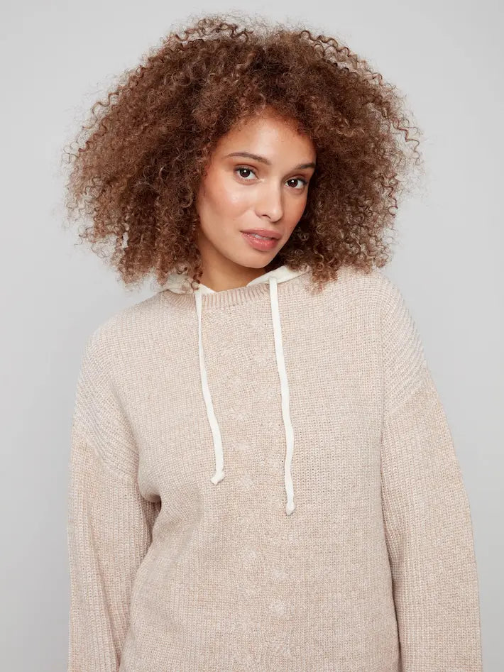 Chandail à capuchon avec détail tressé sur le devant - Sésame Chiné