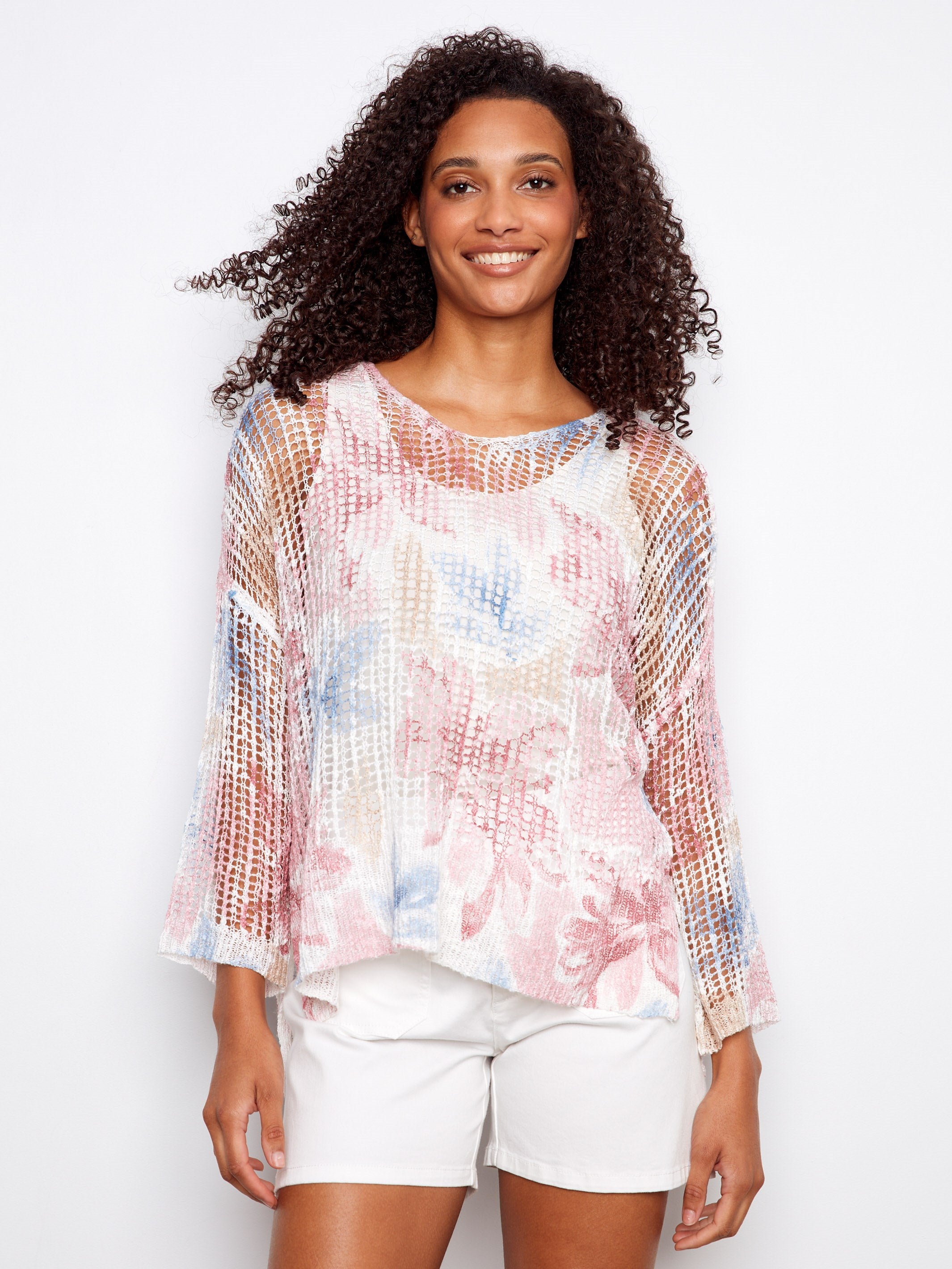 Chandail en crochet filet imprimé - Fleuri