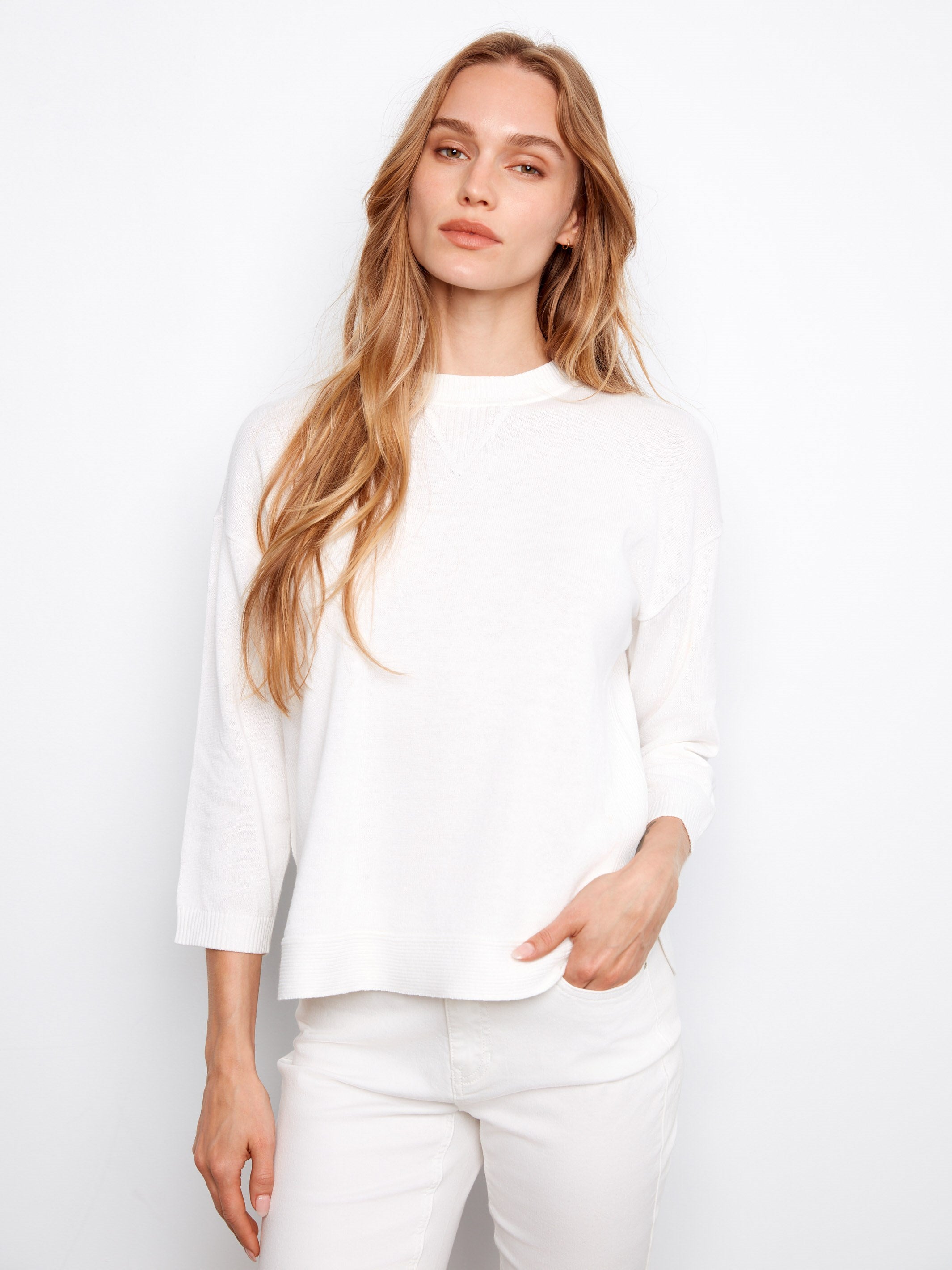 Rafraîchissez votre garde-robe printanière avec ce chandail à col rond en coton blanc, pensé pour un style sans effort. Doté d’un ourlet arrondi et de manches trois quarts, il offre une coupe facile et décontractée qui se porte aussi bien en superposition que seul. Léger et confortable, c’est un essentiel tout en simplicité pour les journées de printemps.