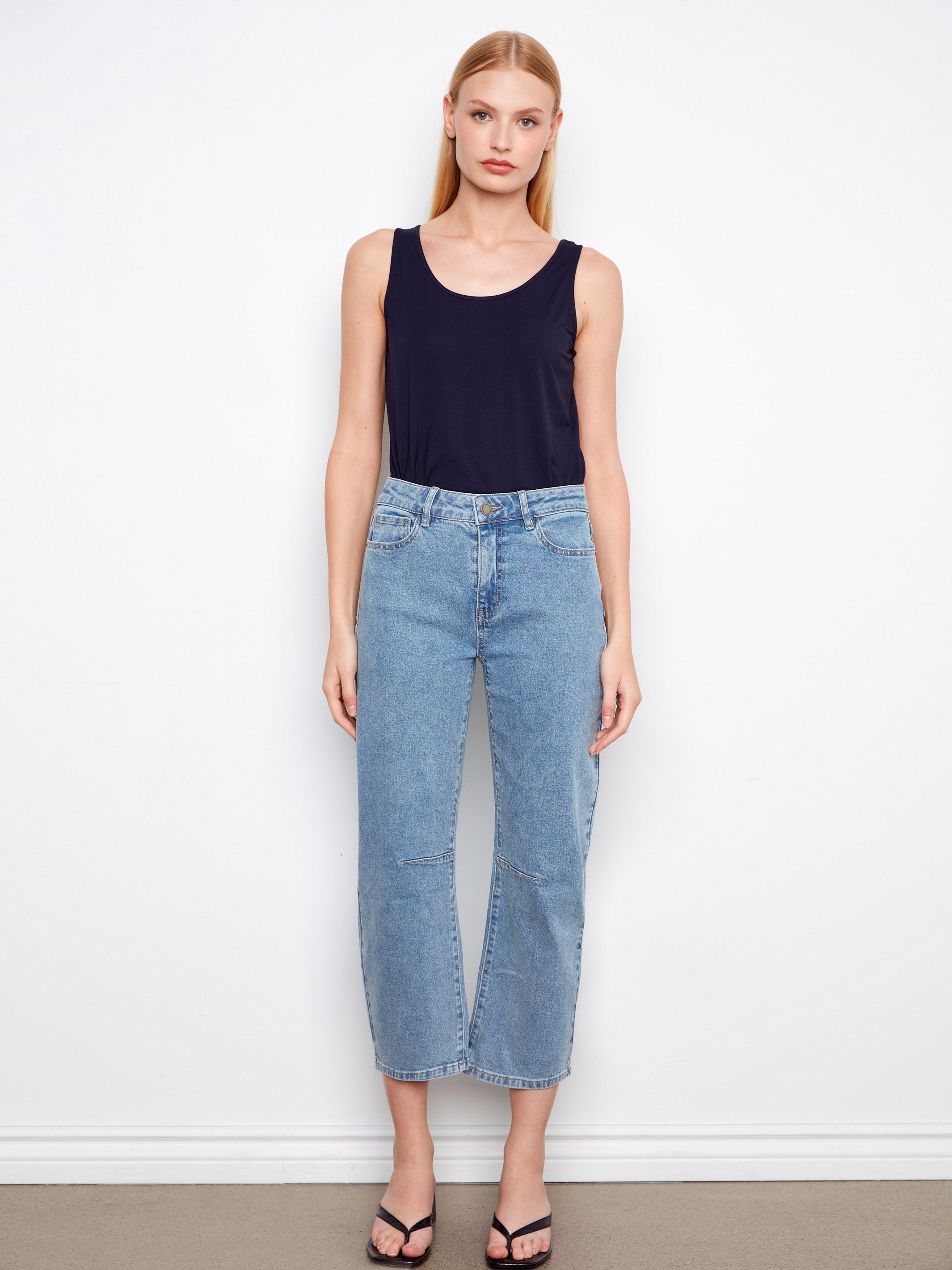 Step up your fashion game with our Cropped Barrel Jeans. The classic medium blue hue effortlessly pairs with any top, while the barrel leg design and cropped length add a trendy twist to classic jeans. With a hint of stretch, comfort is guaranteed, making these jeans ideal for brunch or a leisurely stroll. Elevate your spring wardrobe with this versatile must-have!