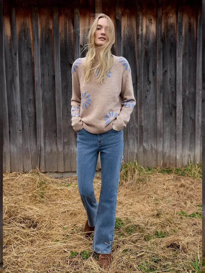 Nep Yarn Mock Neck Floral Sweater - Heather Nutmeg