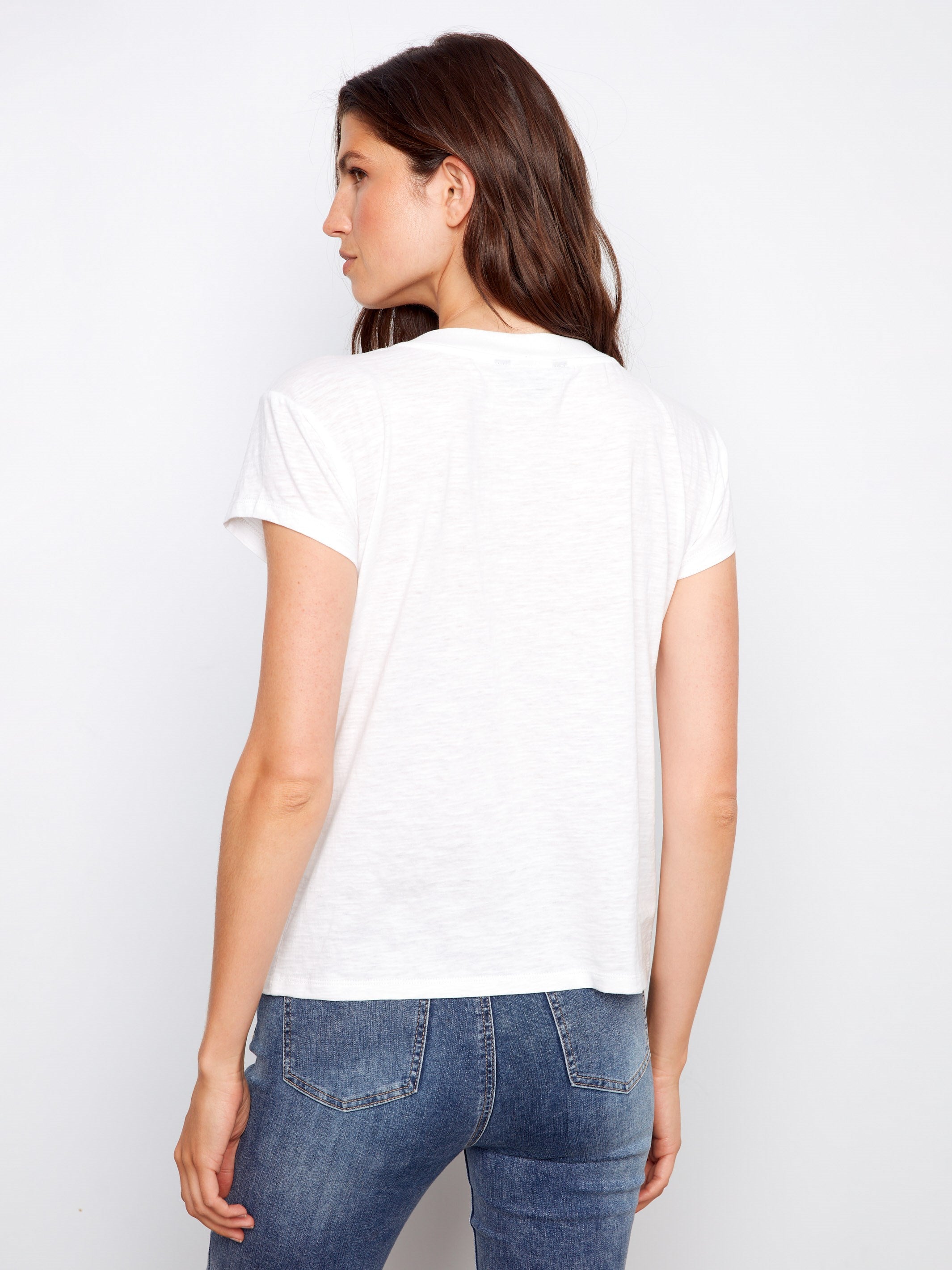 Organic Cotton Drop Shoulder V-Neck T-Shirt - White