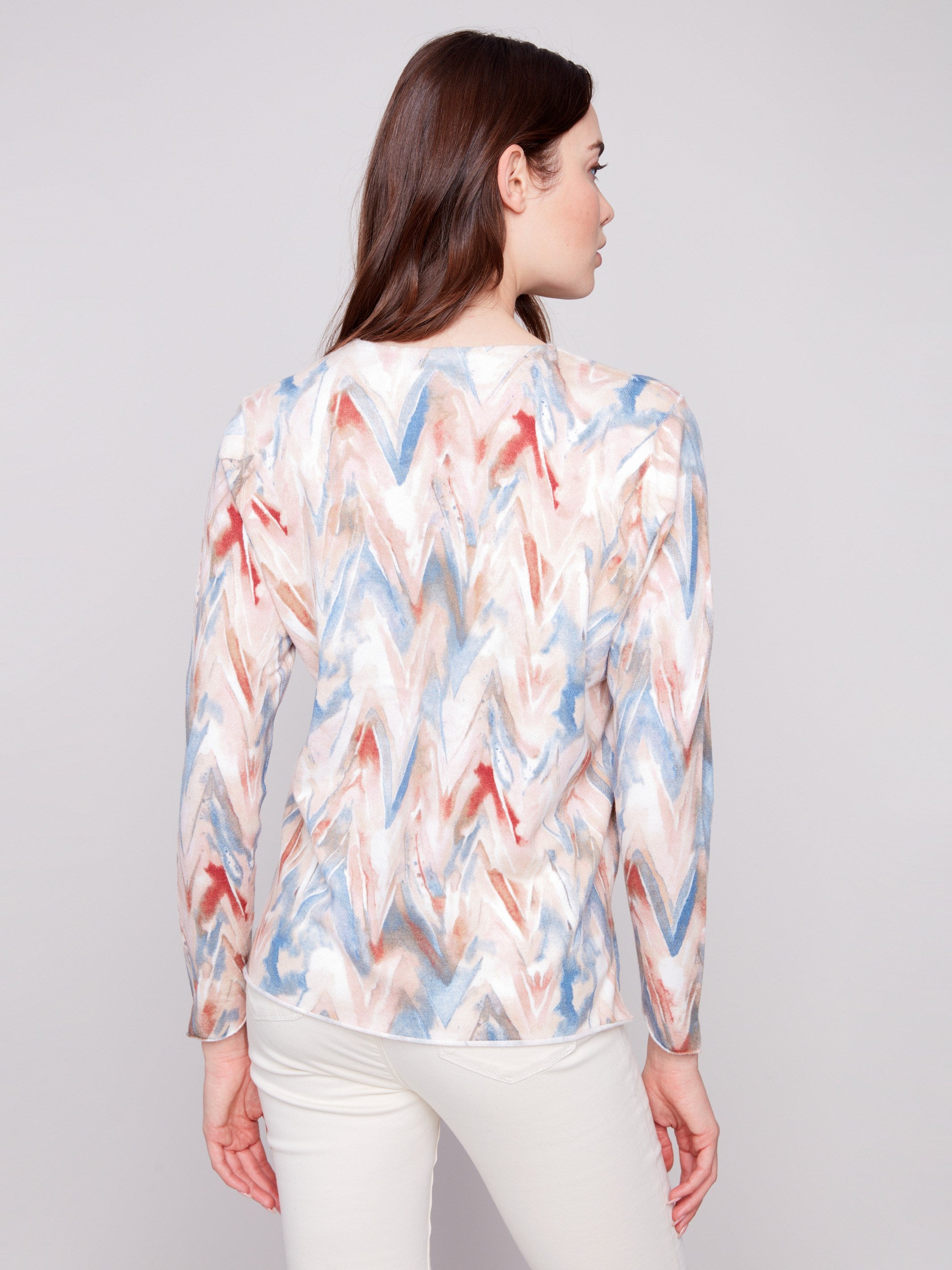 Printed V-Neck Sweater - Chevron