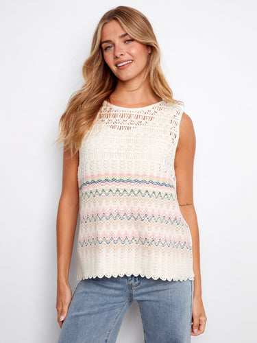 Striped Sleeveless Crochet Cotton Blend Top - Stripes